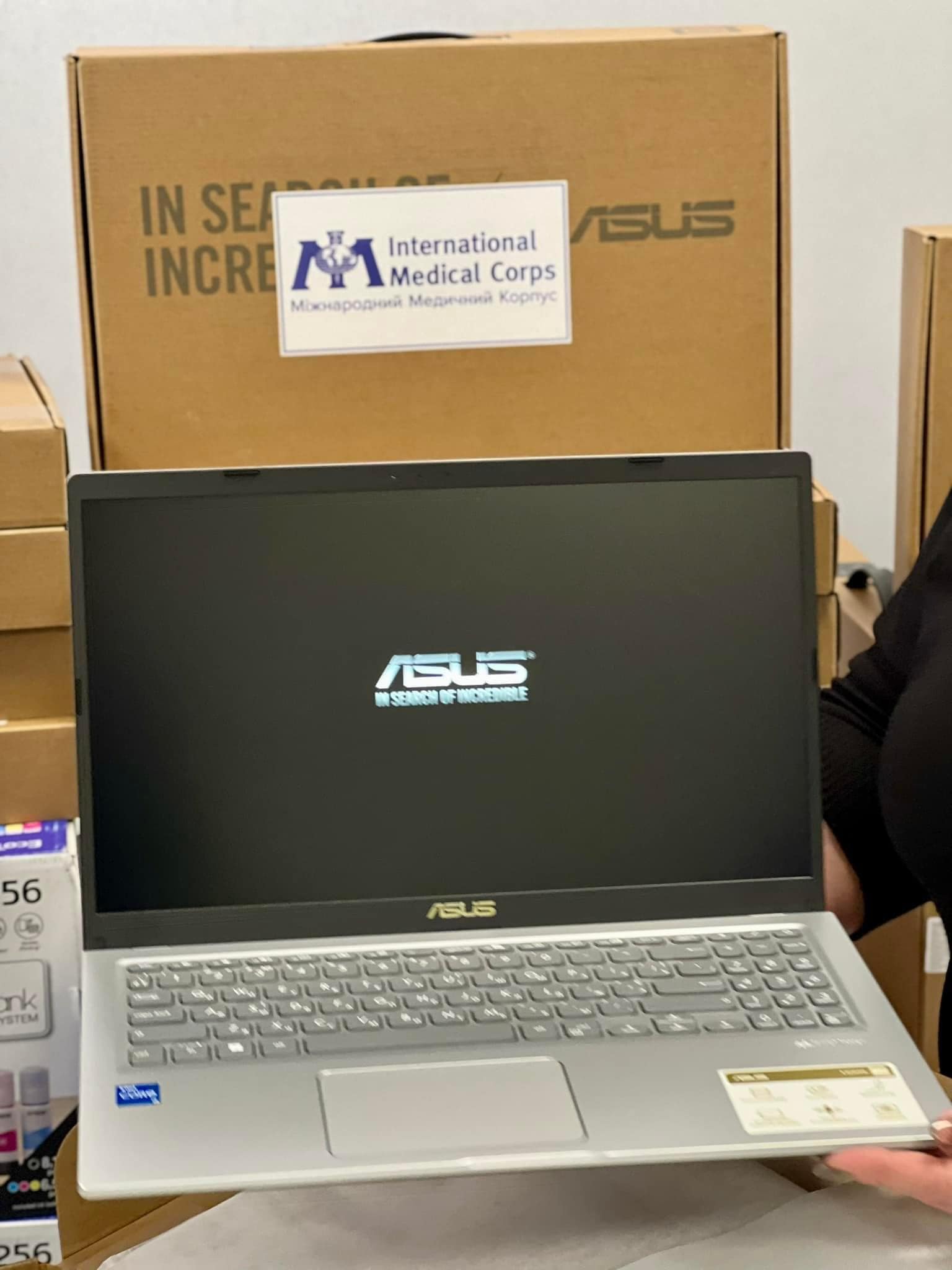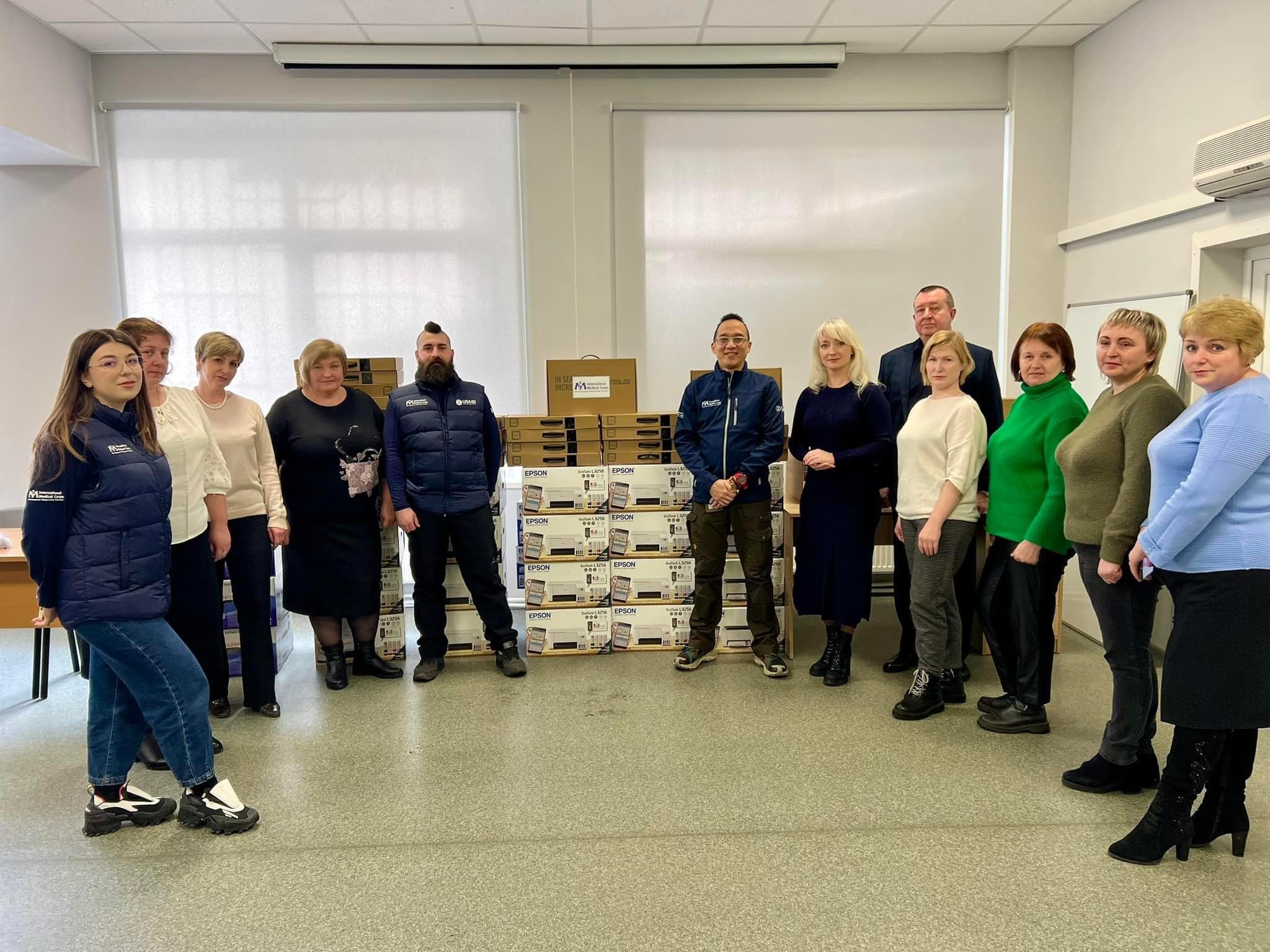 Перший заступник начальника ОВА Наталя Заболотна передала ноутбуки та принтери від Міжнародного Медичного Корпусу для районних управлінь соціального захисту населення. Також 8 ноутбуків та 1 принтер передали для КО «Дата-центр соціальної сфери».