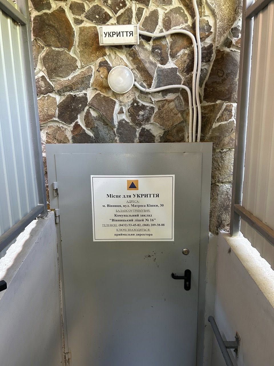 Має два укриття, проте відсутні засоби пожежогасіння, наявні прострочені продукти харчування, вміст аптечки першої допомоги не відповідає вимогам додатку 21 Наказу МВС № 579;