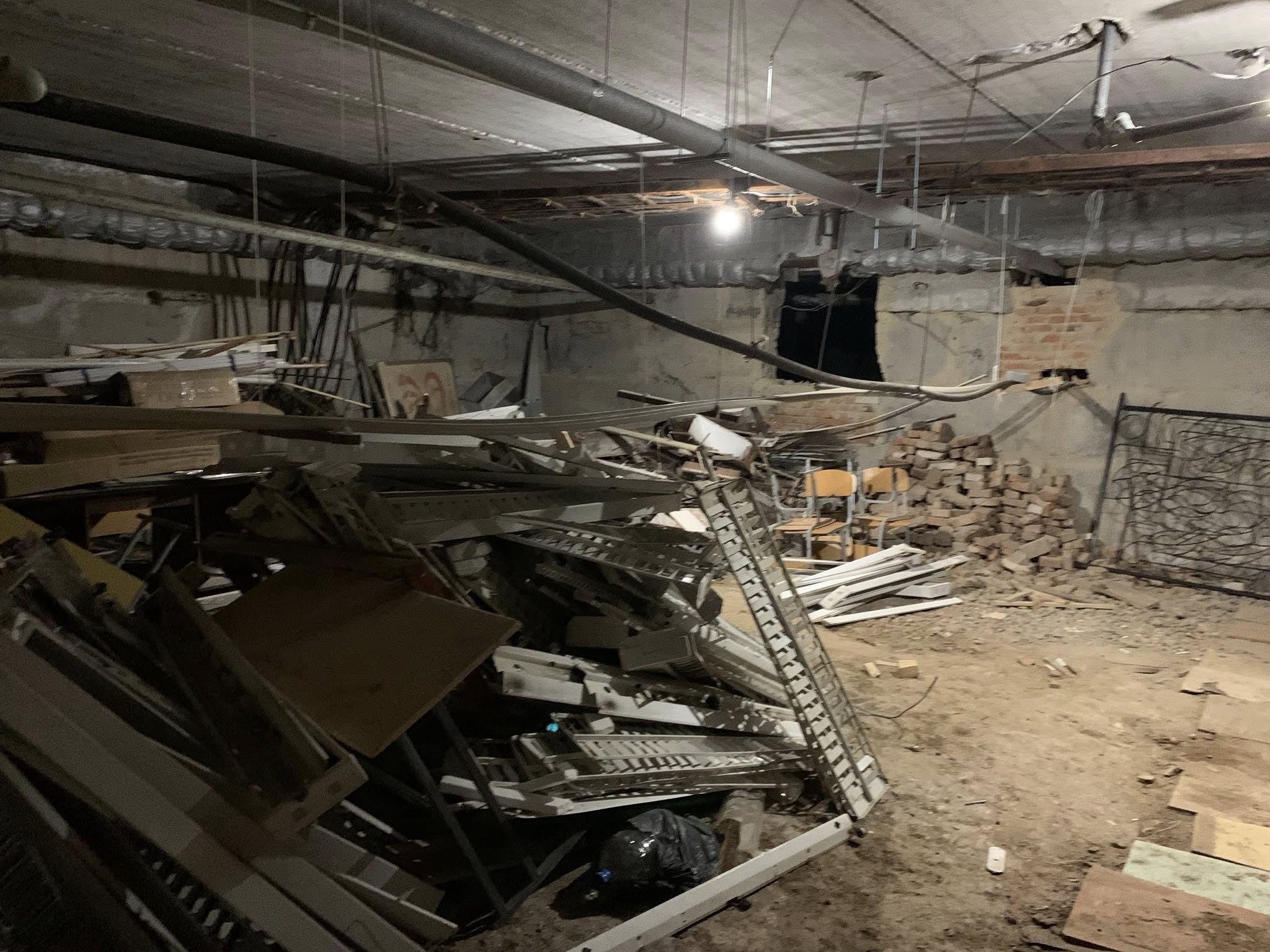 Відсутній запас питної та технічної води, продуктів продукти харчування, значна частина приміщення укриття захаращена сторонніми предметами, будівельними відходами, сміттям, та є непридатною для перебування учасників освітнього процесу;
