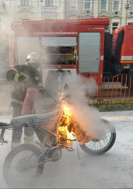 Вчора, 6 серпня, о 19:47, у самісінькому центрі Вінниці, посеред тротуару зайнявся саморобний мопед.