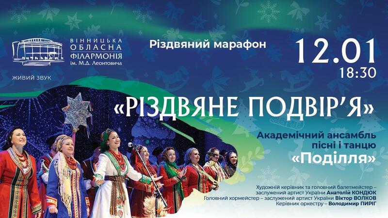 12 січня вінничан та гостей міста запрошують на концерт «Різдвяне подвір’я». Артисти Академічного ансамблю пісні та танцю «Поділля» влаштують театралізоване дійство з колядками, жартами та веселощами.