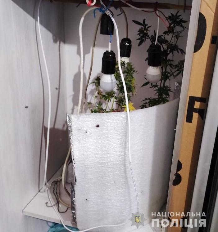 Для вирощування конопель зловмисник облаштував у одній з кімнат штучне освітлення, обігрів та полив. Вилучені наркотики направлено на експертизу.