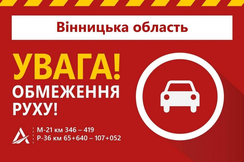 За інформацією Служби автомобільних доріг у Вінницькій області, станом на 17:30, 8 лютого, введено обмеження руху транспортних засобів загального користування та багатоосних транспортних засобів на автомобільних дорогах: