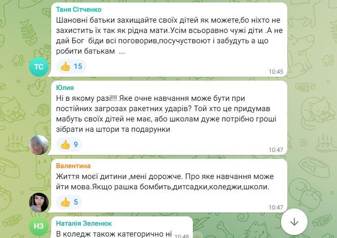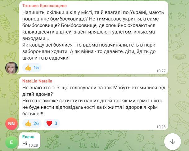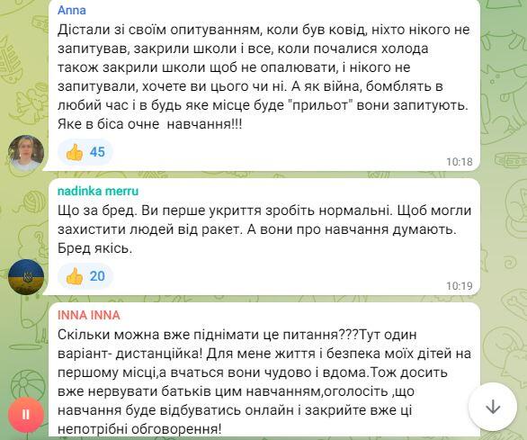 Переважно вони у своїх коментарях негативно відзивалися про можливість «очного» навчання для дітей.