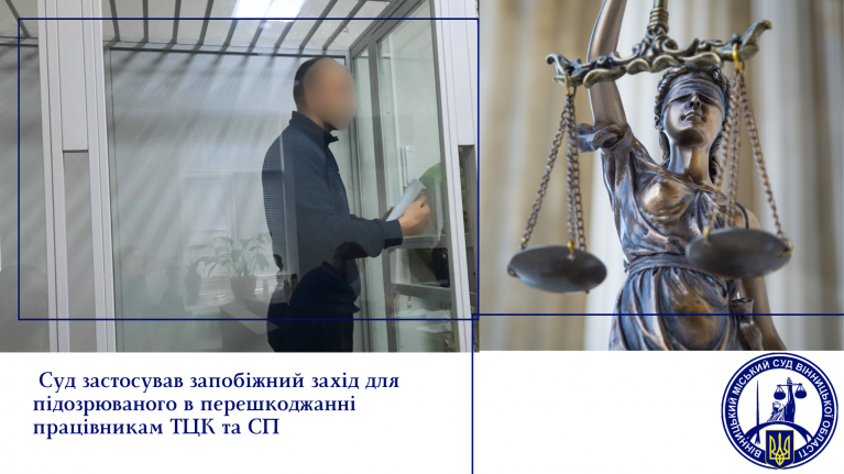 У Вінницькому міському суді Вінницької області відбулося судове засідання, у якому слідчий суддя розглянув клопотання про обрання запобіжного заходу для чоловіка, який підозрюється у скоєнні кримінального правопорушення, передбаченого ч. 1 ст. 114-1 КК України.