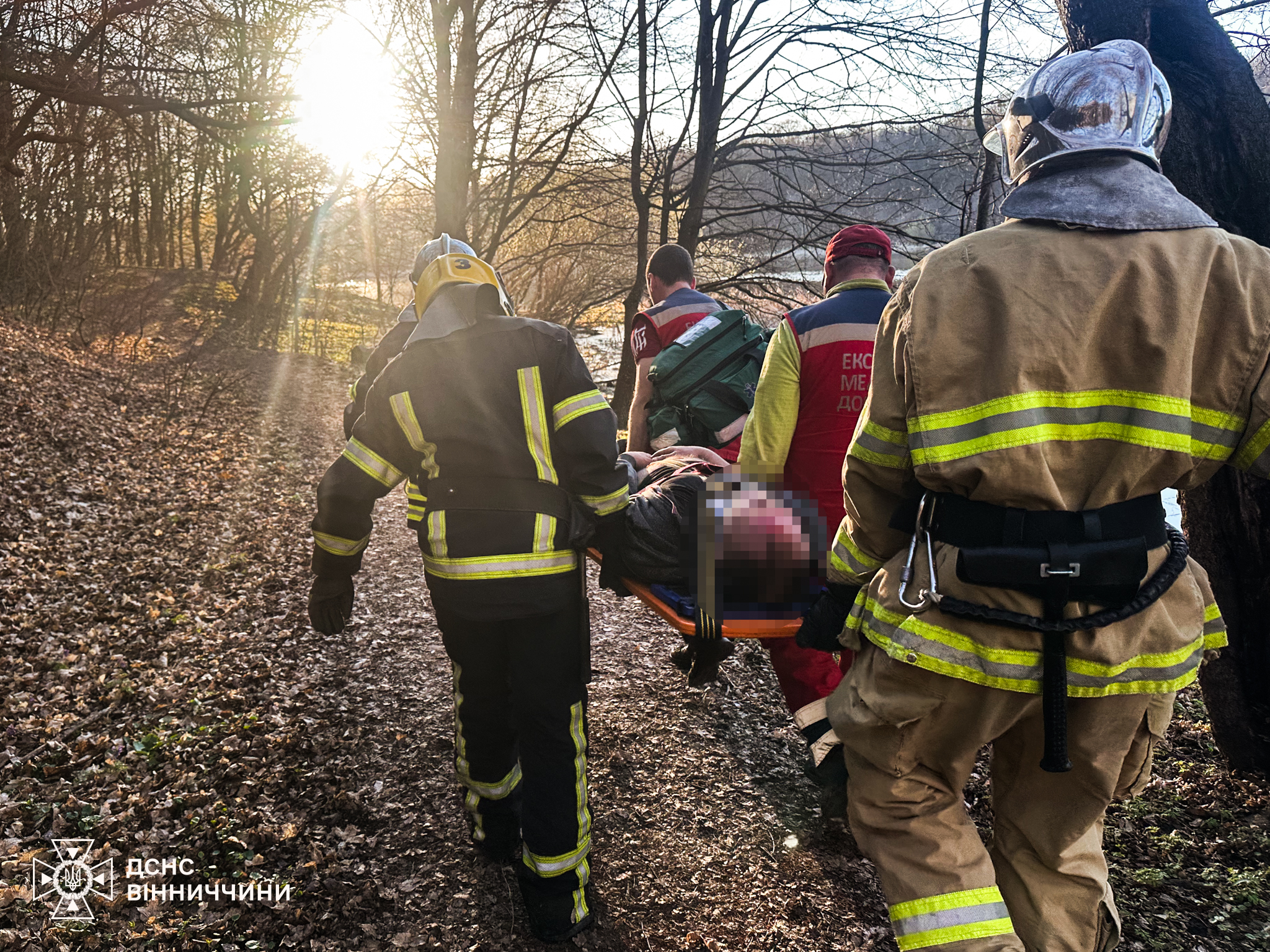 50-річного чоловіка на ношах рятувальники допомогли медикам транспортувати до авто бригади “швидкої”, які доправили потерпілого до лікарні.