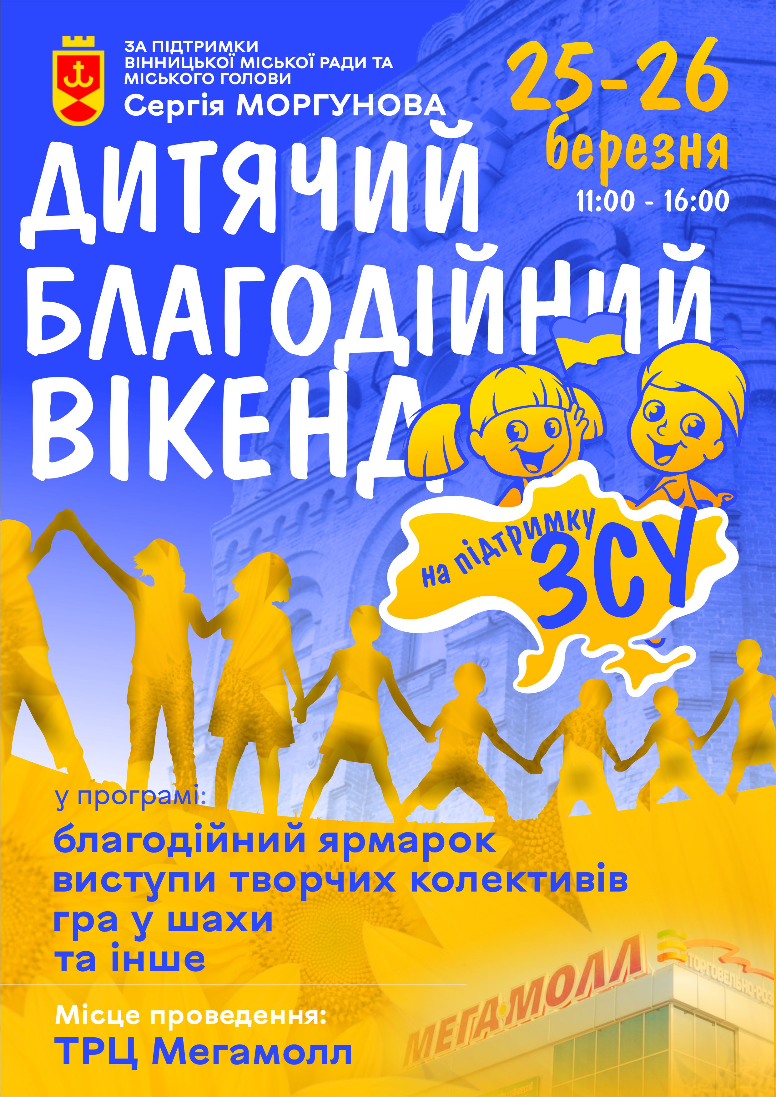 Цими вихідними, 25-26 березня, у ТРЦ «Мегамол» відбудеться перший «Дитячий благодійний вікенд». Мета – зібрати кошти на потреби військових. Ініціативу юних волонтерів та їхніх батьків підтримав міський голова Сергій Моргунов. Відвідати захід та задонатити на ЗСУ запрошують усіх охочих – ярмарок працюватиме з 11:00 до 16:00.
