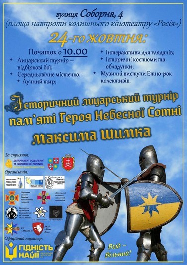Лицарський турнір пам’яті Героя Небесної Сотні Максима Шимка є вже традиційним для Вінниччини. Цьогоріч він відбудеться 24 жовтня на площі навпроти колишнього кінотеатру «Росія». Початок о 10 годині. Вхід – вільний.