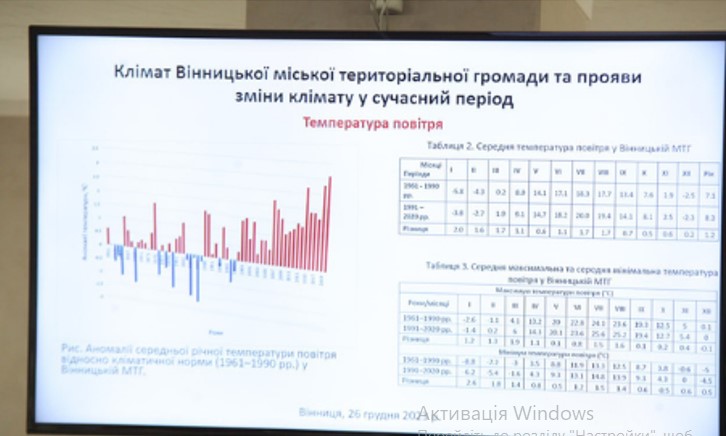 У Вінниці презентували дослідження, в ході якого проаналізовано вразливість громади до кліматичних змін. Проаналізувала вразливість Вінницької громади до змін клімату докторка географічних наук, професорка кафедри метеорології та кліматології географічного факультету Київського національного університету імені Тараса Шевченка Ольга Шевченко.