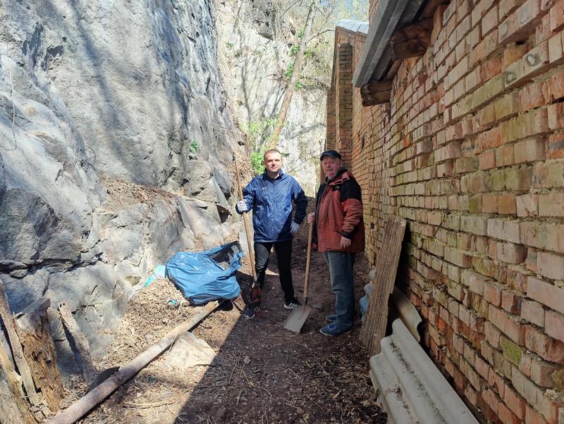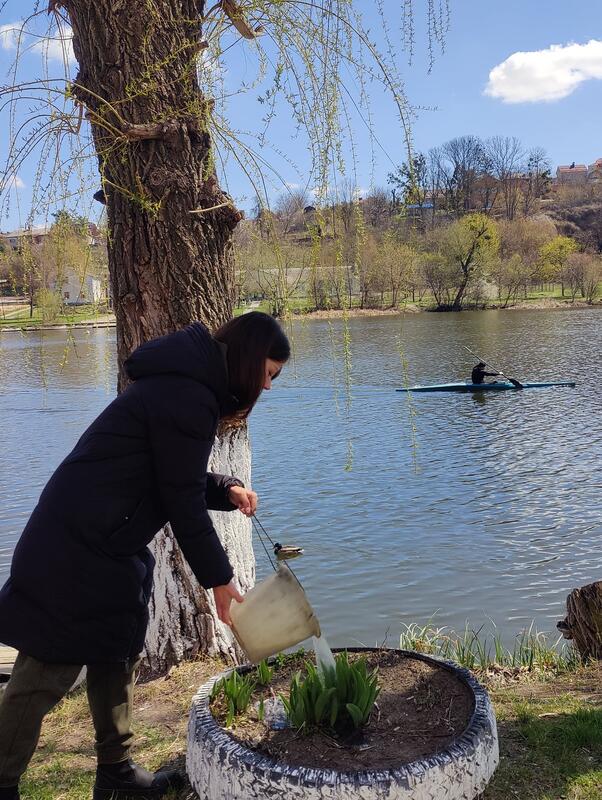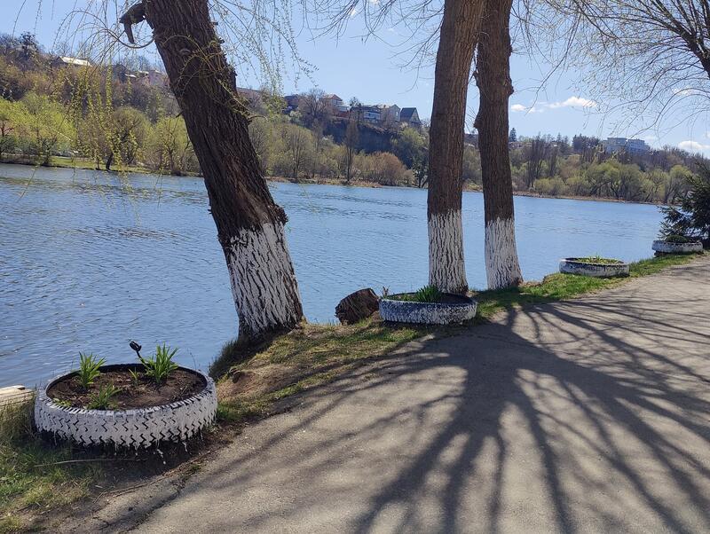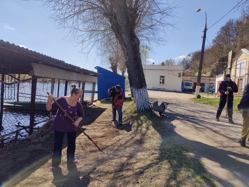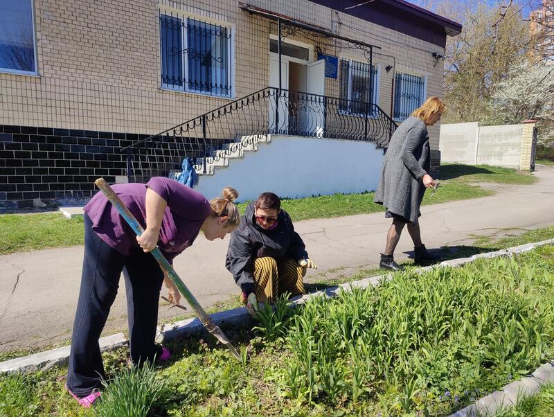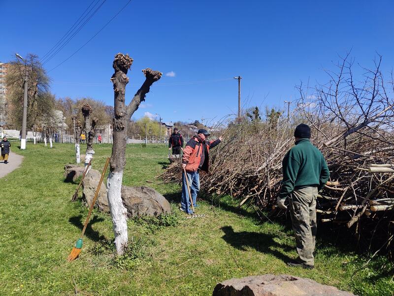Під час прибирання території обрізали та побілили дерева, облагородили клумби, посадили квіти, підмели доріжки, зачистили та пофарбували лавочки, а також вивезли близько 100 кг сміття.