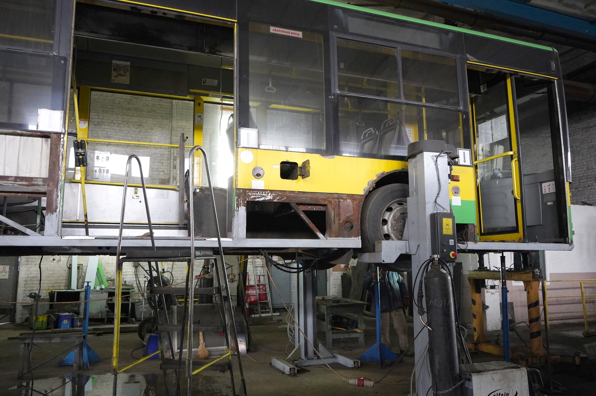 Замінюють зношений метал, оновлюють підлогу, сходинки, сидіння, перевіряють гальма, пневматику та електрообладнання.