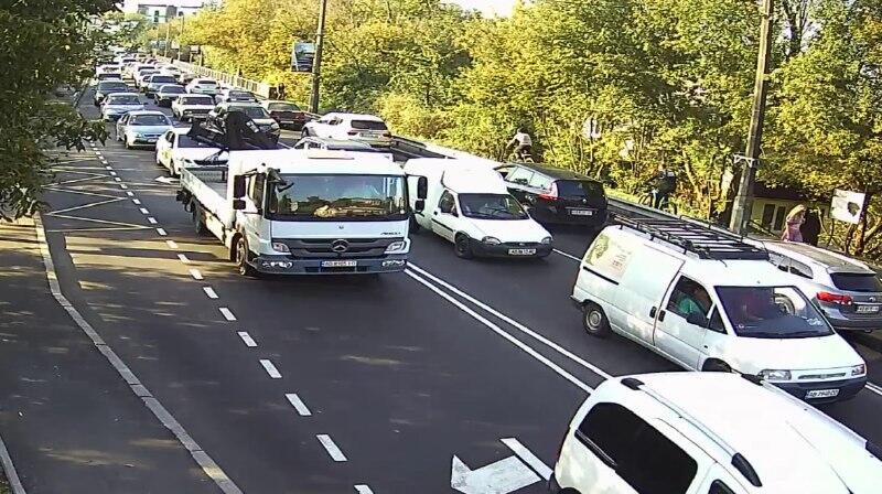 09:29 год – затор на вулиці Гліба Успенського перед підйомом на староміський міст.