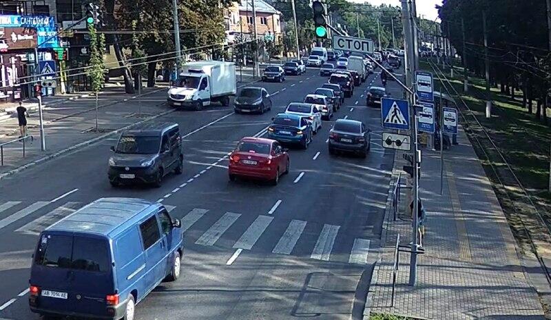 08:41 год – навантаження руху транспорту на вулиці Пирогова на відрізку від перехрестя з вул. Заболотного до ринку “Урожай”.