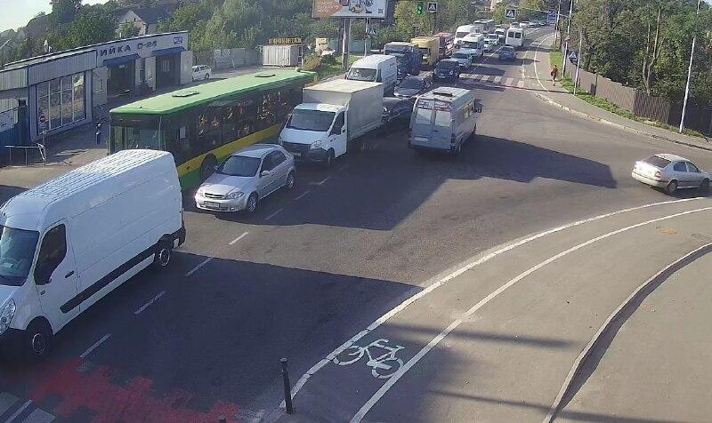 08:34 год – уповільнення руху на староміському мосту.