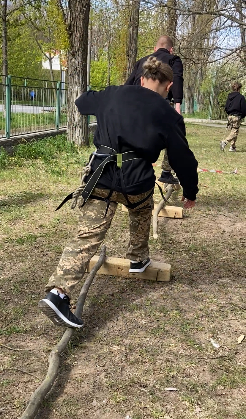 Один із найдинамічніших етапів гри – смуга перешкод. Юнаки та дівчата долають дистанції по купинах, працюють з карабінами, долають різні навісні переправи, й тримають темп усією командою. Для когось це вже знайомий досвід, для когось – нове випробування, але на дистанції добре видно, що рій має діяти злагоджено.