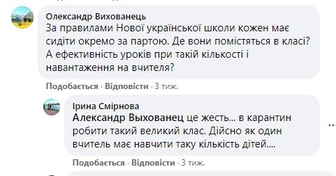 «Вчителька початкових класів Тетяна Талаш, каже клас для такої кількості дітей — замалий. “Їм не зручно, навіть посеред уроку вийти до туалету, то має піднятись пів класу. Не зручно виконувати фізкульт-хвилинку”, — каже Тетяна Талаш», – цитує вчительку місцевий телеканал.