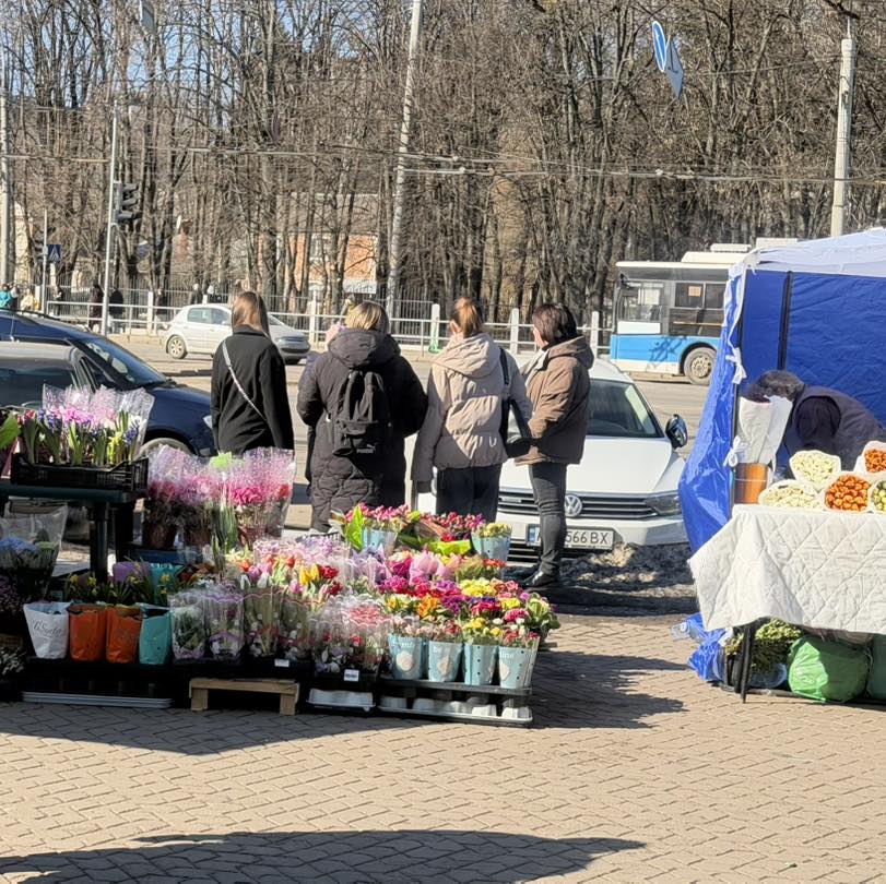 У Міжнародний жіночий день на вінницькому ринку «Урожай» — справжній квітковий ажіотаж. Чоловіки поспішають придбати букети, щоб привітати своїх коханих, мам, дружин та колег.