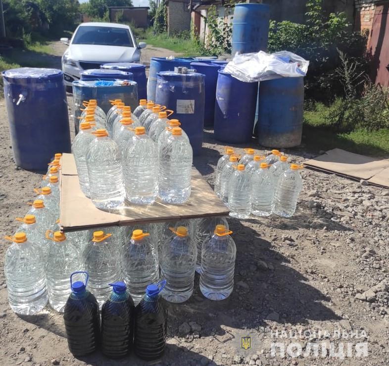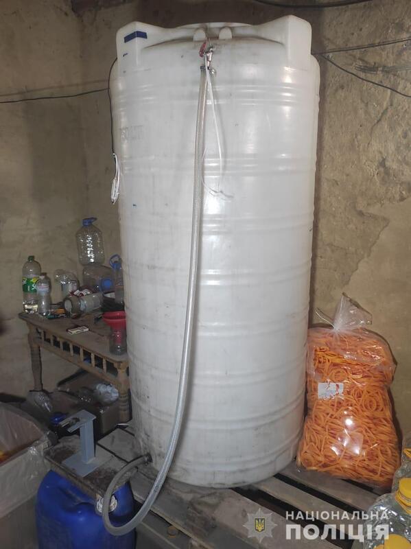 В ході проведення слідчих дій працівники поліції виявили та вилучили близько 4 тонн спирту, місткості різних розмірів для виготовлення, зберігання та перевезення продукції, електричний насос, чорнові записи, мобільні телефони, банківську карту та три автомобілі, які належать правопорушникам», – йдеться у повідомленні.