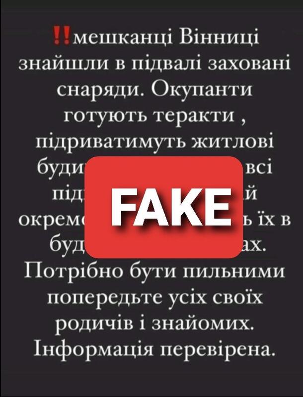 Через групи у соцмережах поширюється інформація щодо нібито виявлення мешканцями Вінниці снарядів у підвалі будинку. Це не підтверджено.