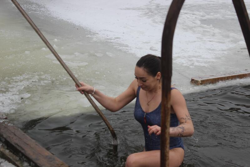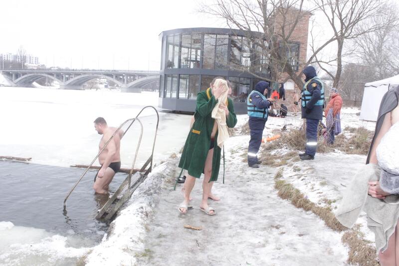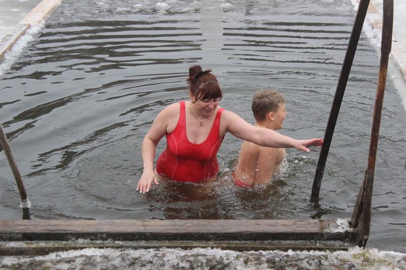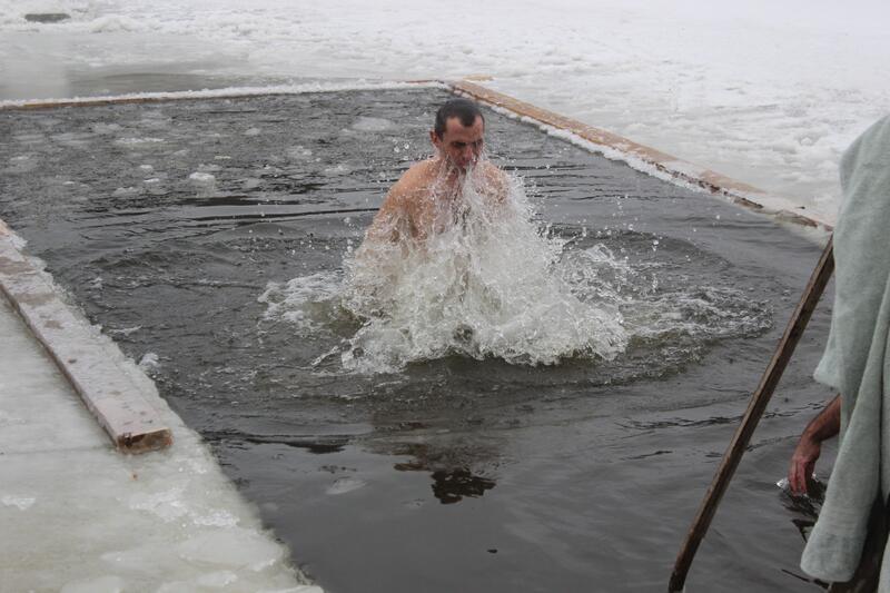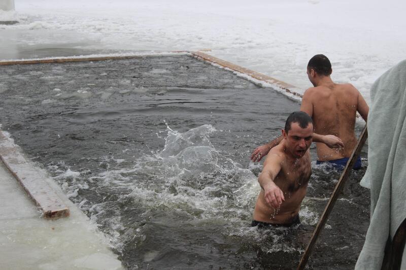 Одне з таких «нелегальних» місць купання відвідав наш фотокореспондент. Воно знаходилося на півострові Бригантина, поряд з церквою. Тут теж панував піднесений, святковий настрій, дух затримувався від крижаної води, а нутрощі потім зігрівав гарячий чай.