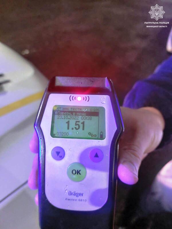 «Водійці запропонували пройти перевірку на спецприладі Drager. Алкотестер показав, що в організмі жінки 1,51 проміле алкоголю», – йдеться у повідомленні.