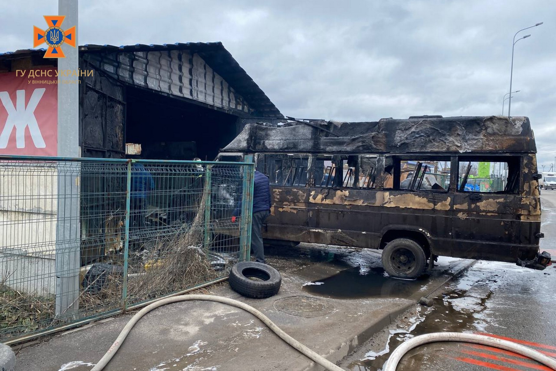 Вогонь знищив мікроавтобус та обладнання для ремонту автомобілів.  До ліквідації загоряння від ДСНС залучалося 6 надзвичайників та 2 одиниці спецтехніки.