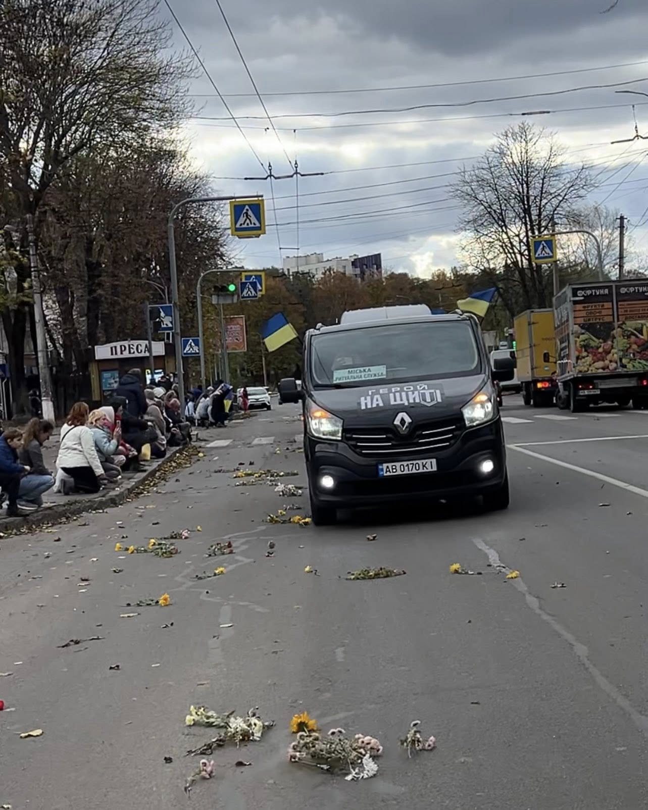 Похоронний кортеж вирушив з обласного моргу (вул. Євгена Коновальця, 83) за маршрутом: вул. Брацлавська – вул. Лебединського – вул. Немирівське шосе – вул. Гетьмана Мазепи – вул. Левка Лук’яненка – с. Малі Крушлинці. Усюди на шляху кортежу вінничани виходили вшанувати навколішки пам’ять загиблих воїнів.