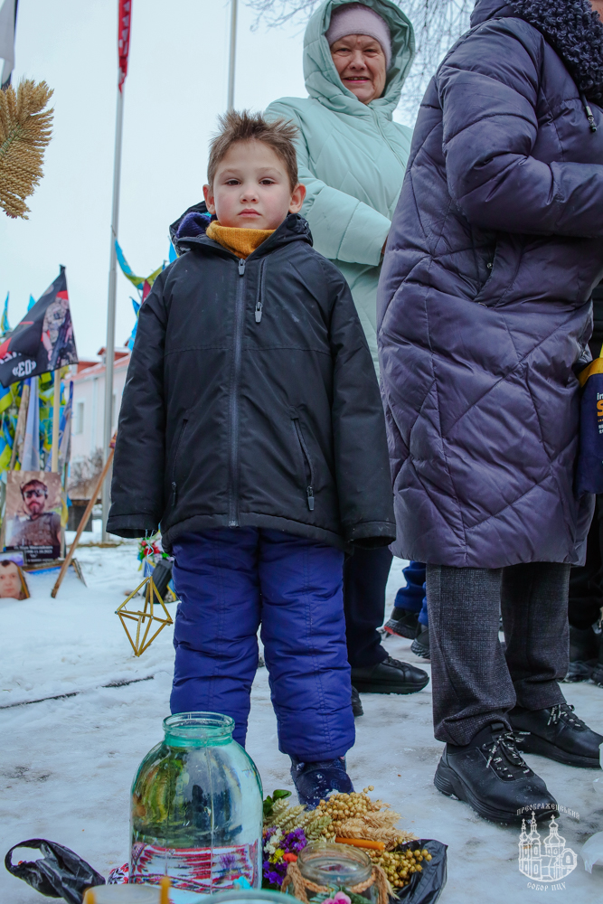 По завершенню богослужіння духовенство звершило чин Великого освячення води. Після чину отець Віталій виголосив проповідь та привітав присутніх у храмі вірян зі святом.