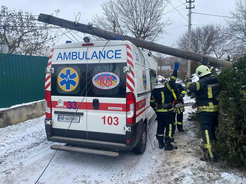 Сьогодні, 6 грудня, о 10:07 до Служби порятунку «101» надійшло повідомлення про те, що в с. Лука-Мелешківська Вінницького району на автомобіль екстреної медичної допомоги, бригада якого саме приїхала на виклик до хворого, впав дерев’яний стовп.