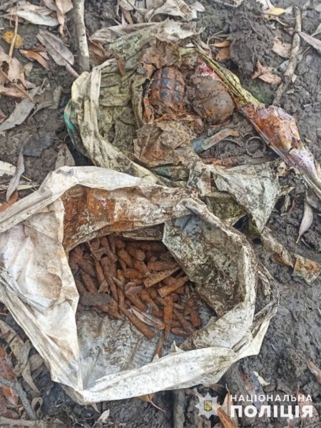 До приїзду фахівців вибухотехнічної служби місцеві поліцейські забезпечили охорону периметра місця знахідки. Вибухотехніки вилучили 2 гранати Ф-1 та одну РГД-5, 2 запали до ручних гранат, 106 патронів калібру 5,45 мм та 2 великокаліберних набої.