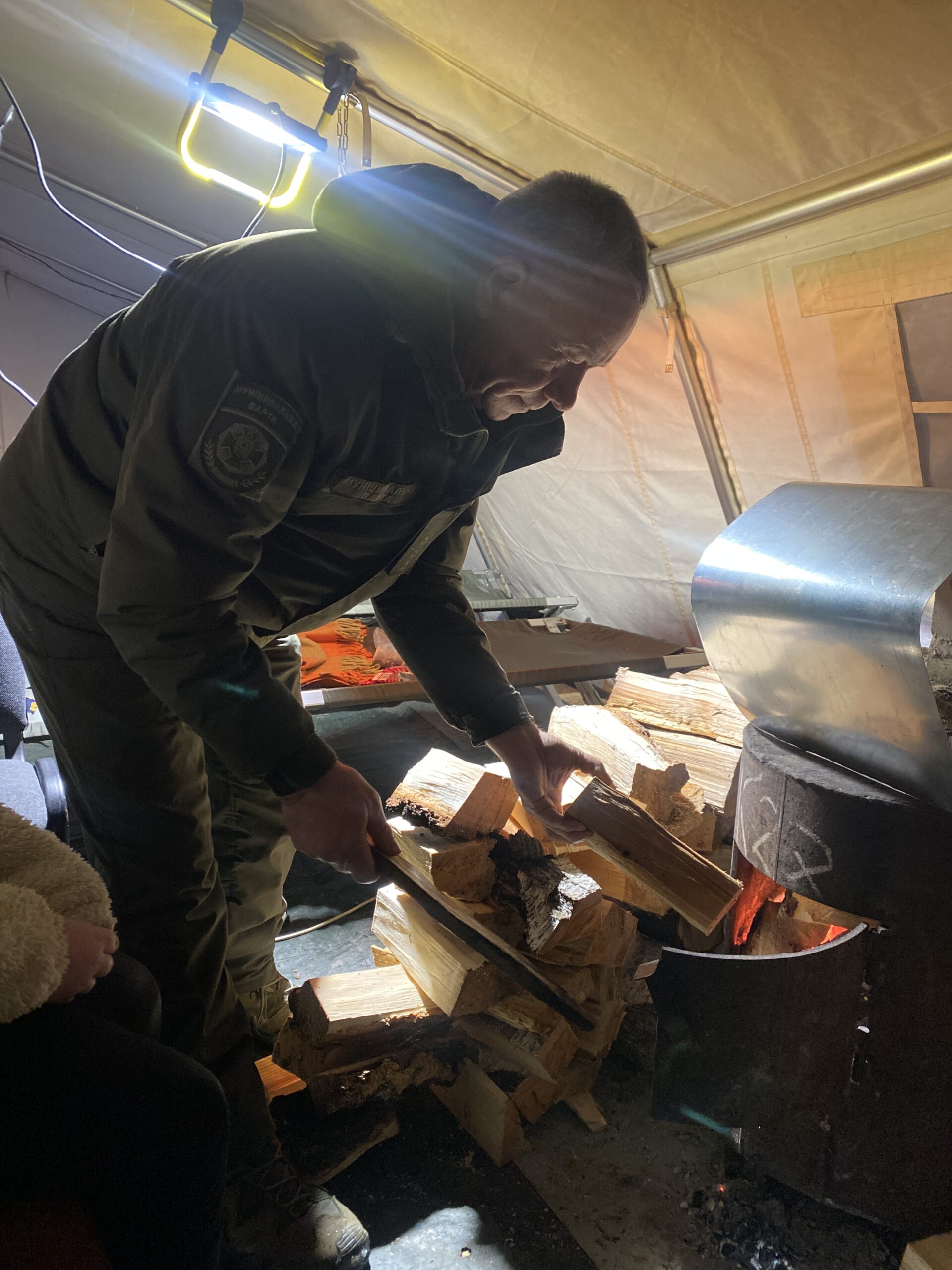 У наметі відвідувачі можуть зігрітися, зарядити телефони, випити чаю. Для частування людей є печиво, цукерки, а також зона для відпочинку. За необхідності тут можна навіть переночувати — у пункті облаштовані спальні місця, є піч-буржуйка та запас дров.