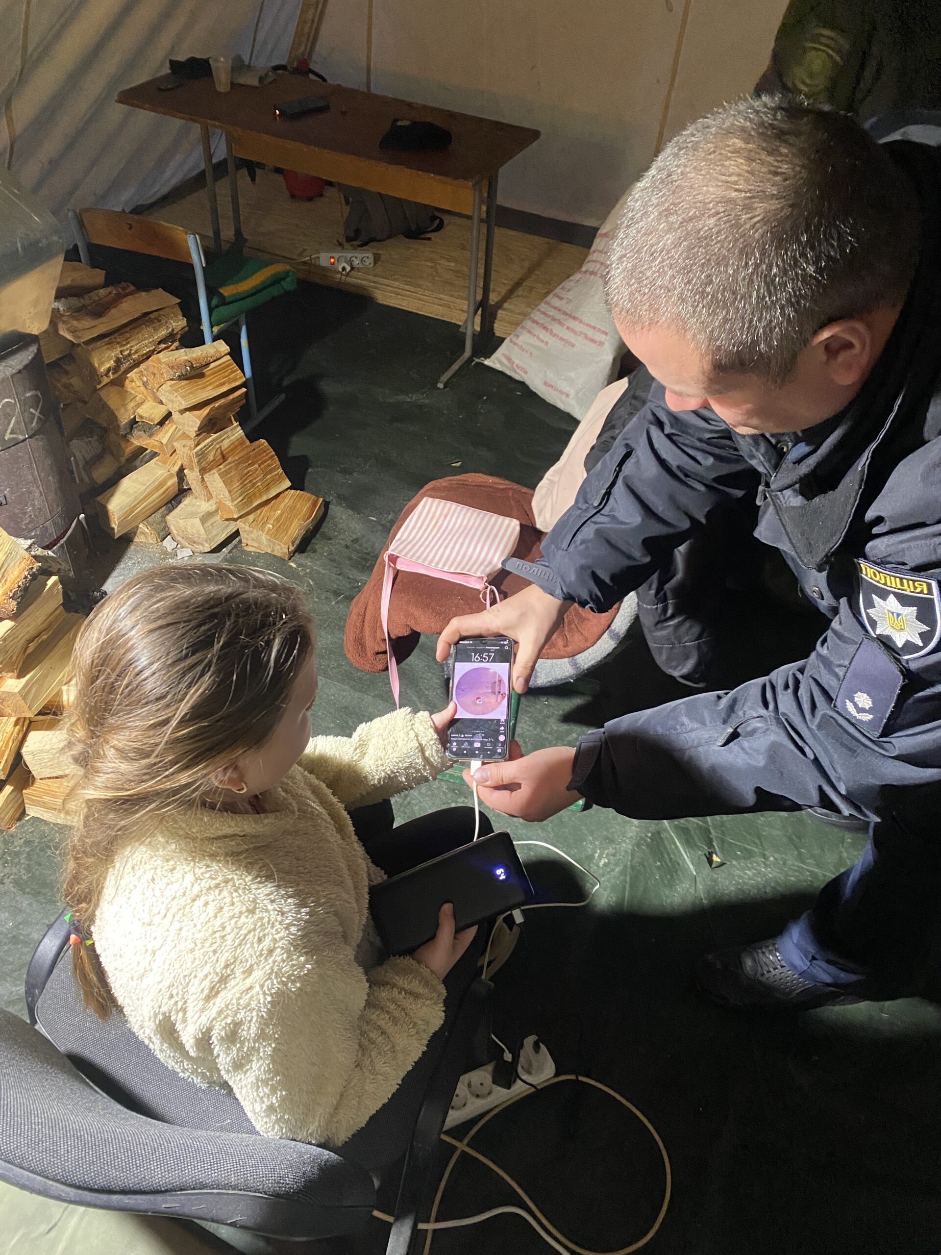 Однією з відвідувачок мобільного пункту на вулиці Зулінського стала місцева жителька. Вона розповіла, що вдома має електричну плиту, тож під час відключень такий Пункт незламності став для неї справжньою підтримкою: разом із донькою-підліткою та песиком вона прийшла сюди, щоб зігрітися, випити чаю та зарядити необхідні гаджети.