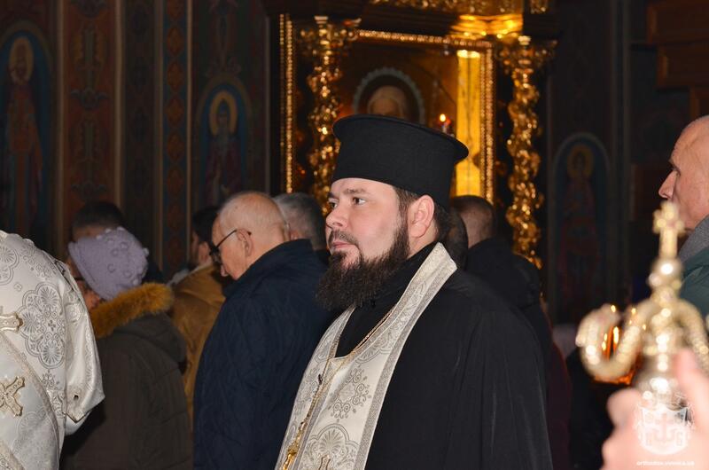 «Його Високопреосвященству співслужили священники собору. Після полієлею та величання перед іконою Різдва Христового Архіпастир привітав усіх з прийдешнім святом», – йдеться у повідомленні.