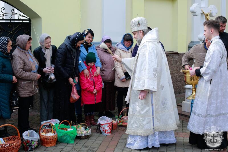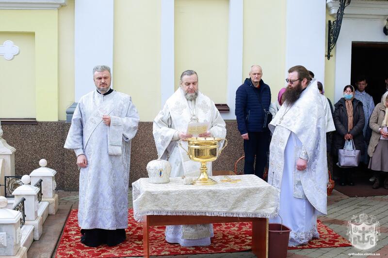 Вчора, 23 квітня, після Літургії митрополит Вінницький і Барський Симеон (ПЦУ), за Церковним уставом, звершив освячення хліба та вина.. Також Владика освятив пасхальні кошики вірян принесені ними до храму.