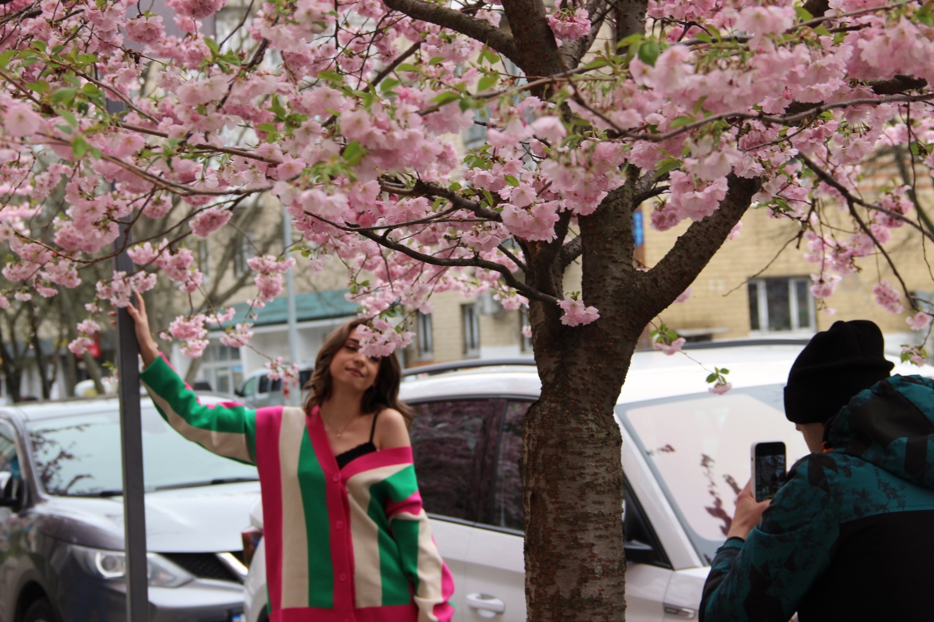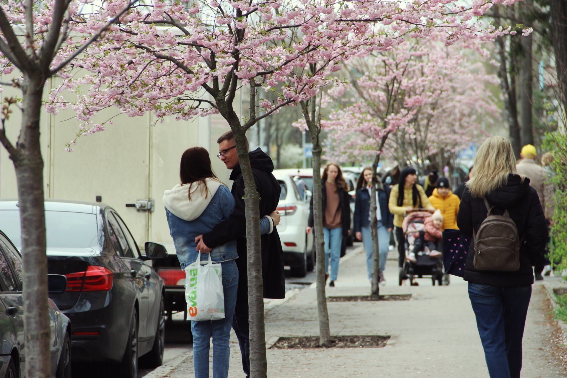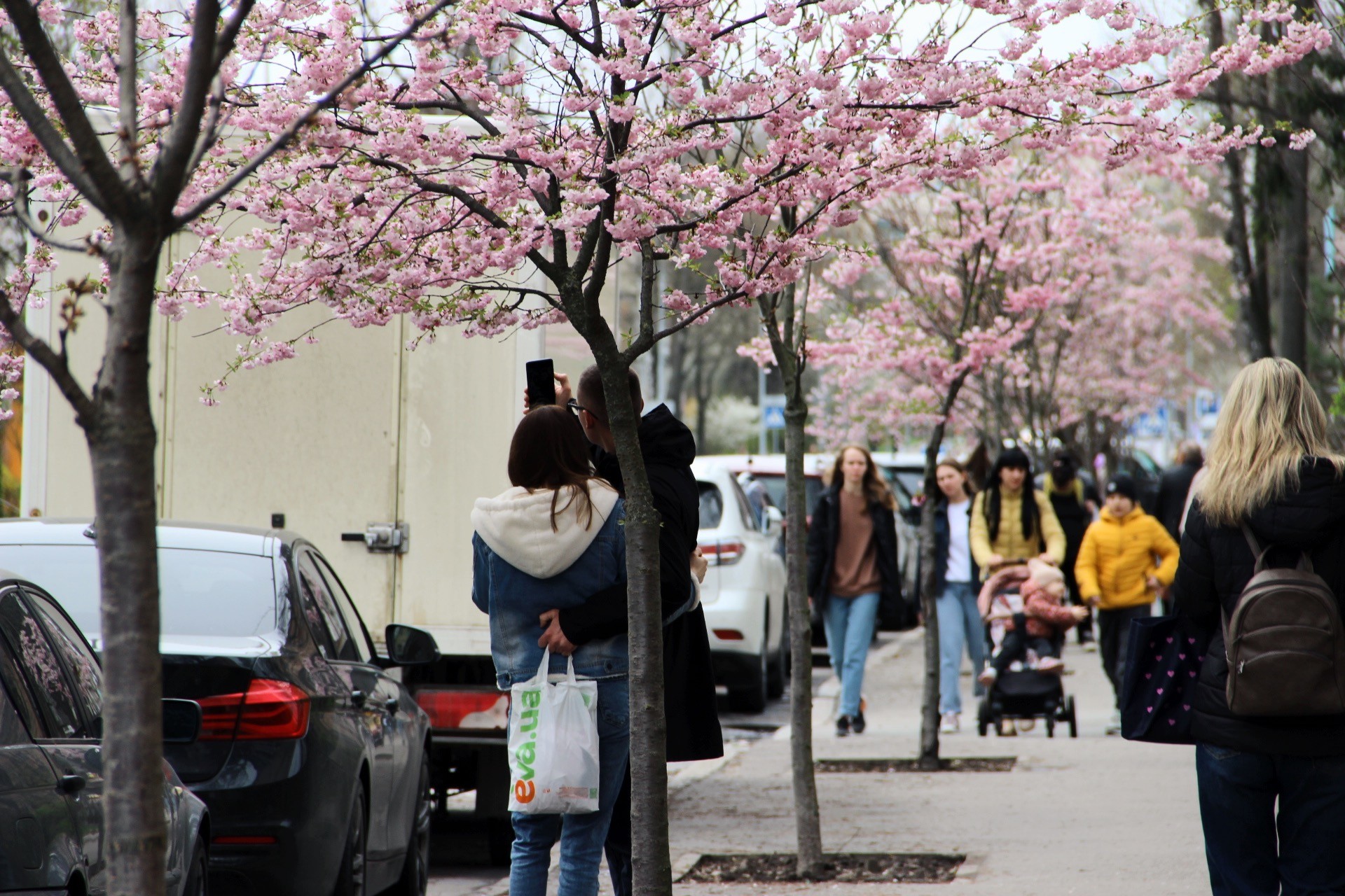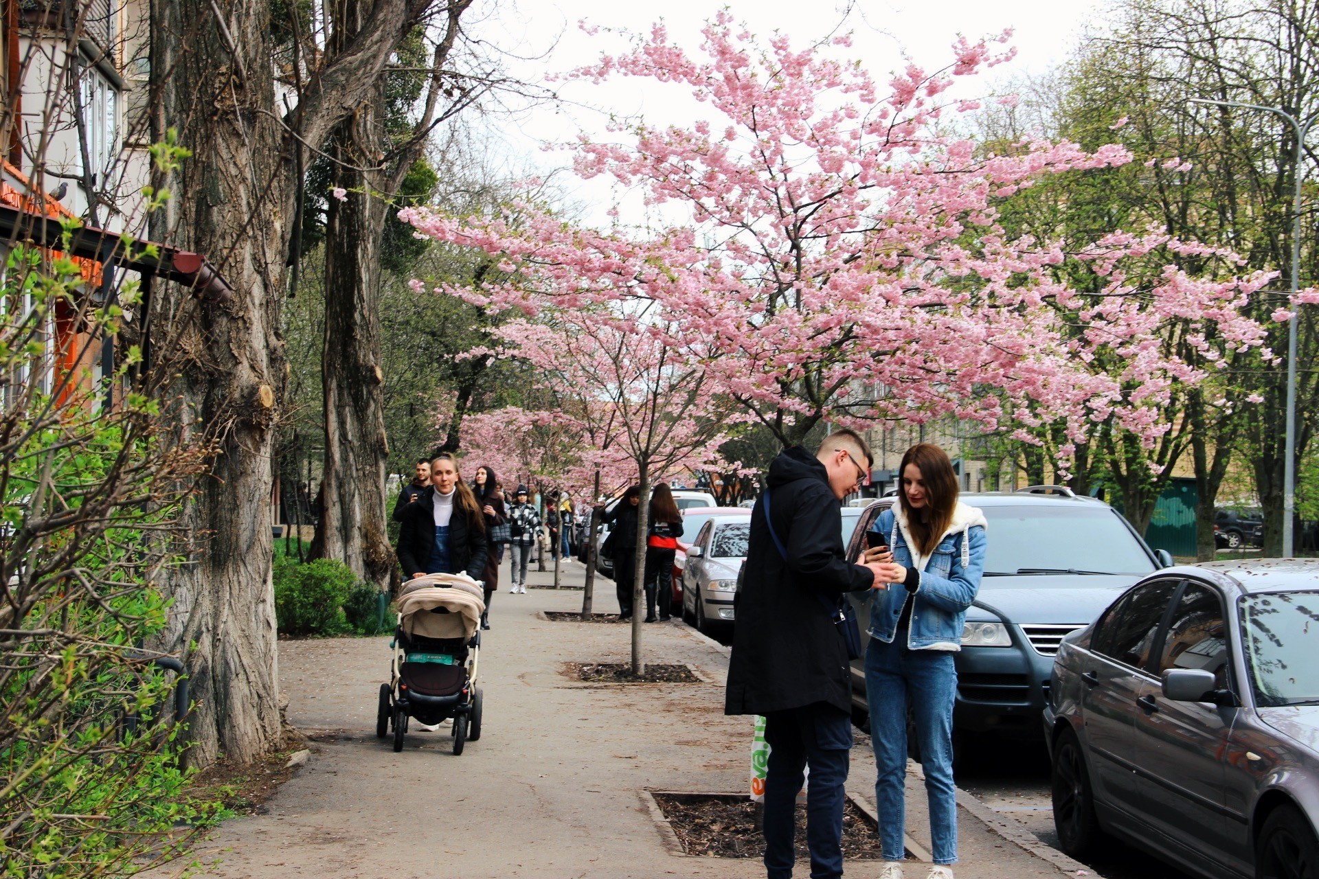На алеї по вулиці Порика у Вінниці розцвіли сакури. Вже не один рік рожеве цвітіння дерев приваблює до себе вінничан. Один за одним люди роблять весняні знімки біля японської вишні. Вінничани поспішають зробити фото з квітучими деревами.