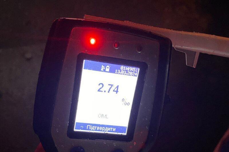 «Чоловік погодився пройти огляд на спецприладі Драгер. В організмі водія виявили 2,74 проміле алкоголю, що майже в 14 разів перевищує допустиму норму», – йдеться у повідомленні.