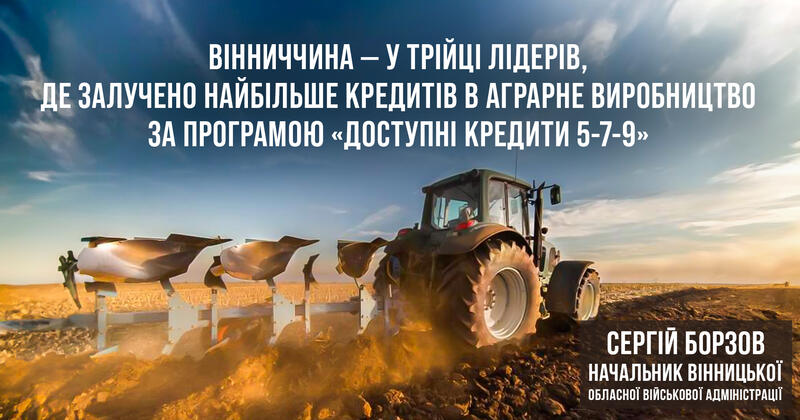 Вінниччина — у трійці лідерів, де залучено найбільше кредитів в аграрне виробництво за програмою «Доступні кредити 5-7-9». З початку року 412 сільськогосподарських підприємств регіону отримали 1,326 млрд гривень банківських кредитів на розвиток.