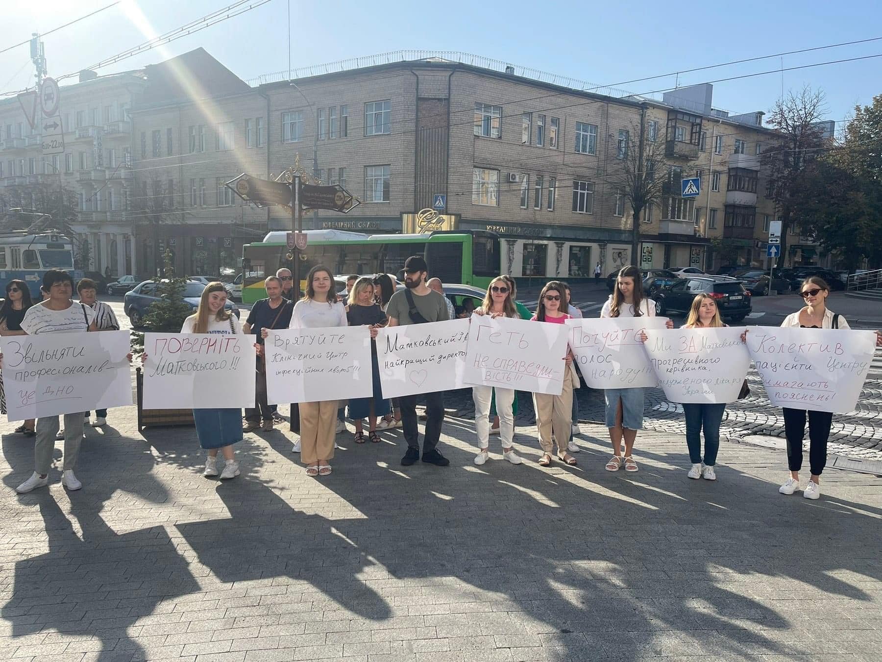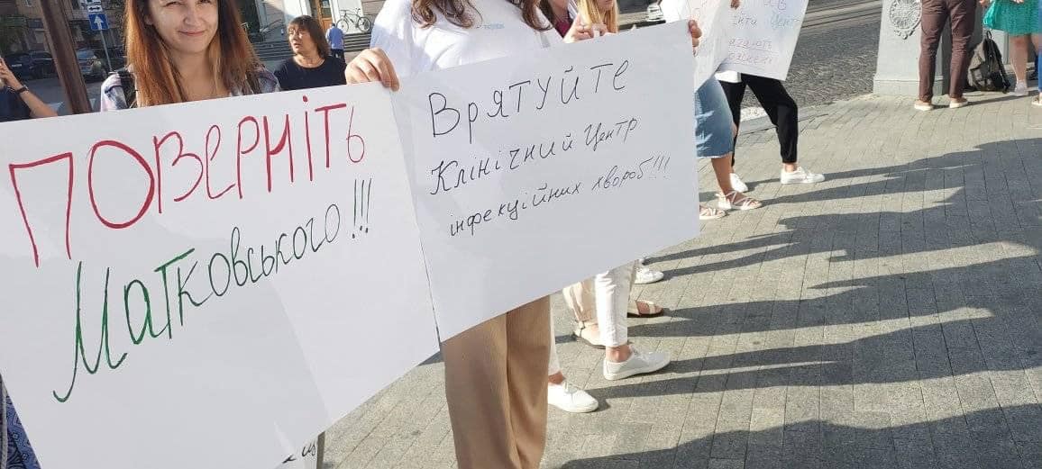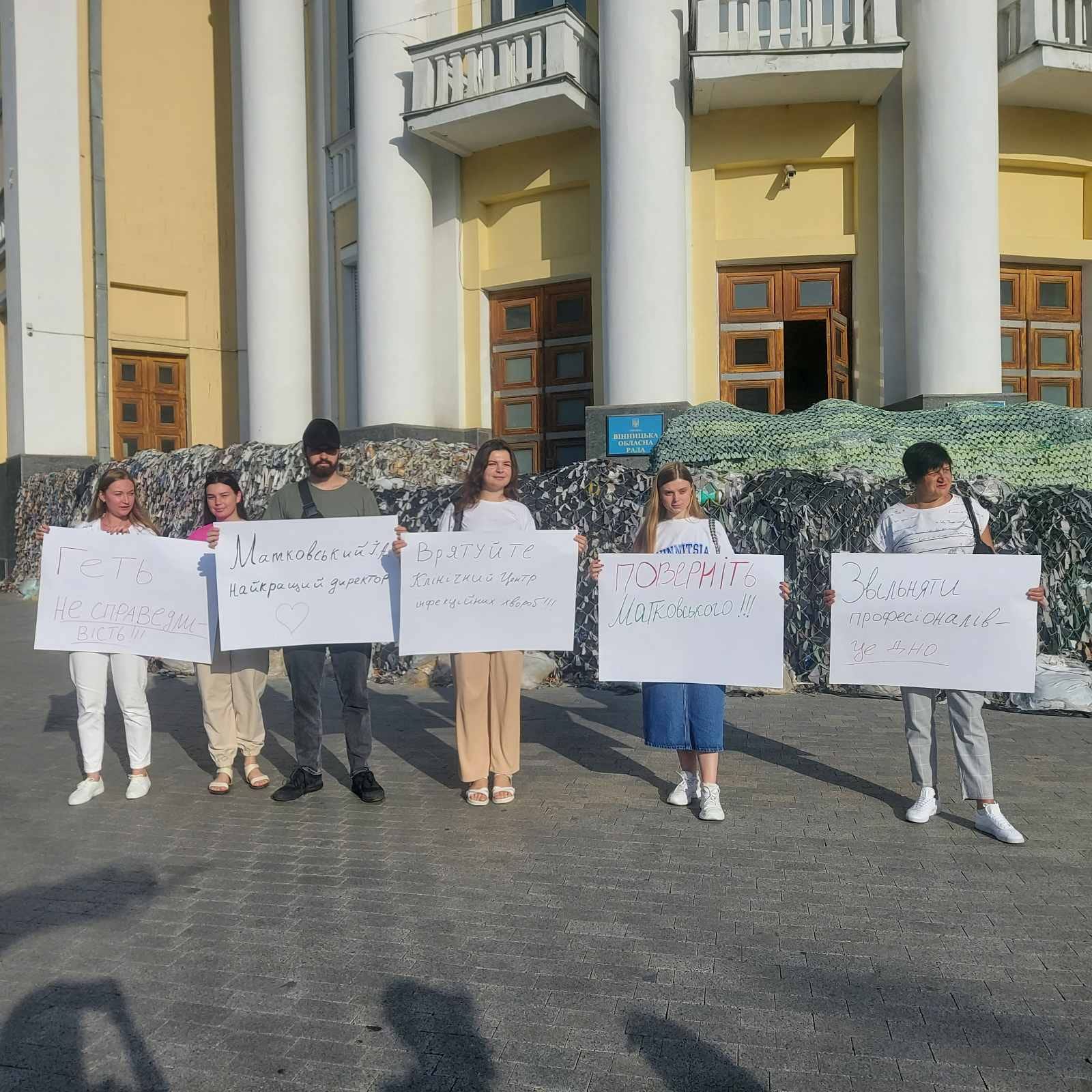 Колектив Клінічного Центру інфекційних хвороб сьогодні вийшов під стіни Вінницької обласної ради в очікуванні відновлення справедливості. Працівники вимагають відновити на посаді директора центру Ігоря Матковського.