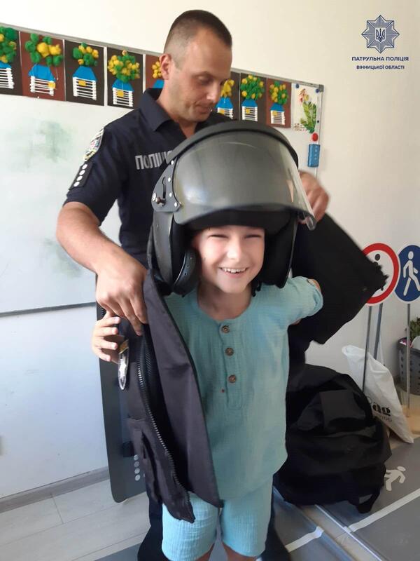 Патрульні показали дітям своє спорядження. При цьому кожен міг його приміряти та відчути себе поліцейським.