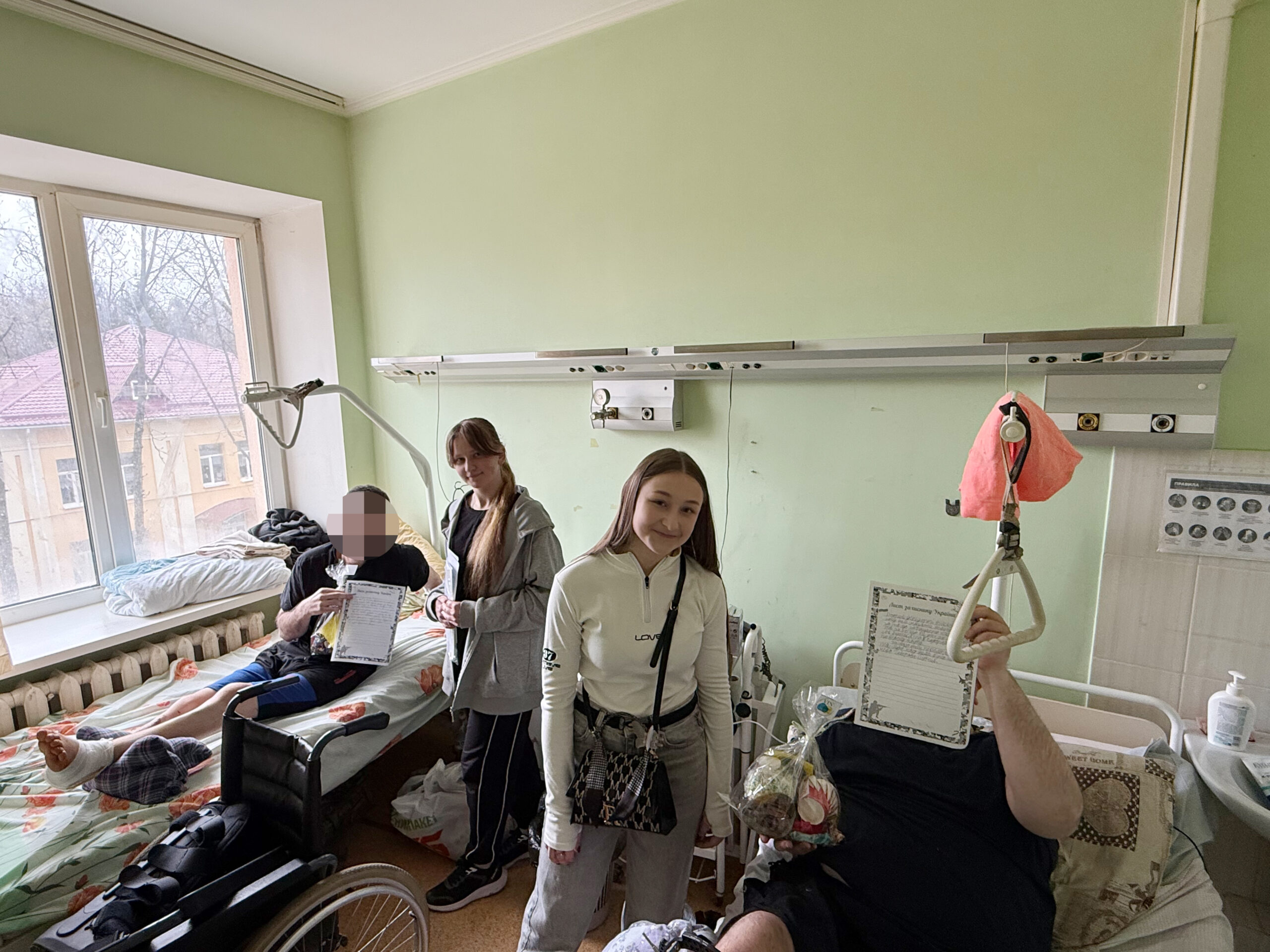 У медзакладах на дітей уже чекали. Юних волонтерів коридорами відділень супроводжують медики. З гостинцями з дозволу пацієнтів вони заходять до палат. Там військові з різними травмами. Хтось зустрічає дітей лежачи, бо поки не має сили підвестися. Хтось поволі сідає на ліжку, щоб узяти пакунок і подякувати. А хтось, попри біль і втому, все ж підіймається назустріч, щоб потиснути руку чи обійняти. У ці хвилини в палатах стає тепліше. Дитячі листівки, малюнки, паски й кілька щирих слів проникають в серце. І тоді особливо гостро відчувається: на них чекають, про них пам’ятають, за них моляться.