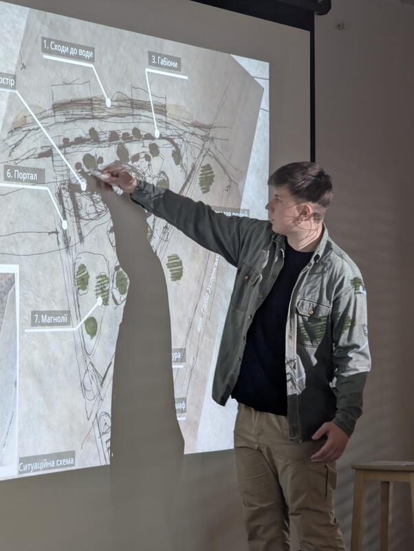 «Під час заходу студентські команди разом із менторами з агенції напрацьовували рішення для створення локальної точки тяжіння із врахуванням принципів проекту “Алея 12,7” (безперервний маршрут вздовж берегової лінії Бугу). Важливим було орієнтування на природні рішення, максимальне врахування та використання існуючого контексту.