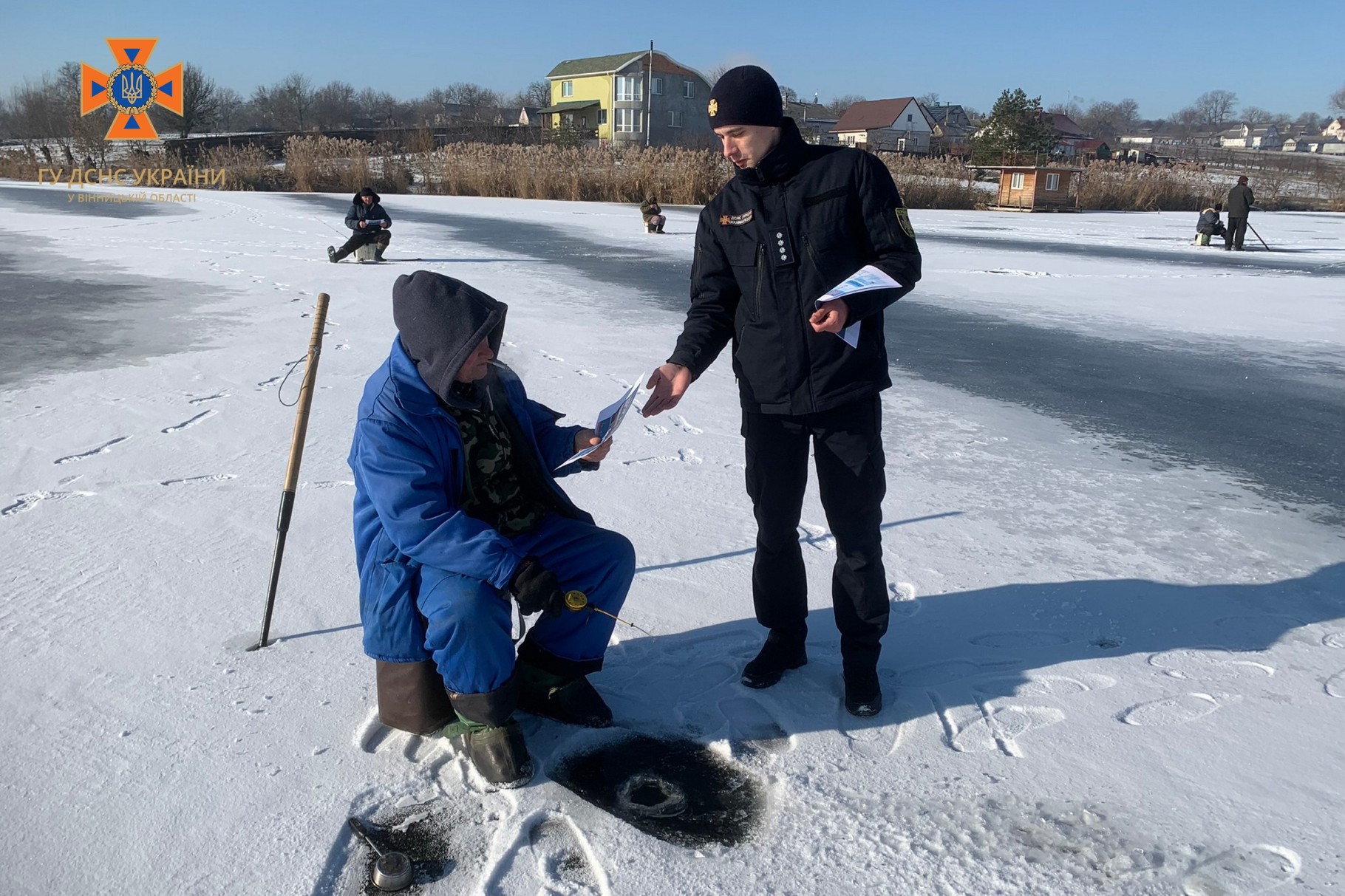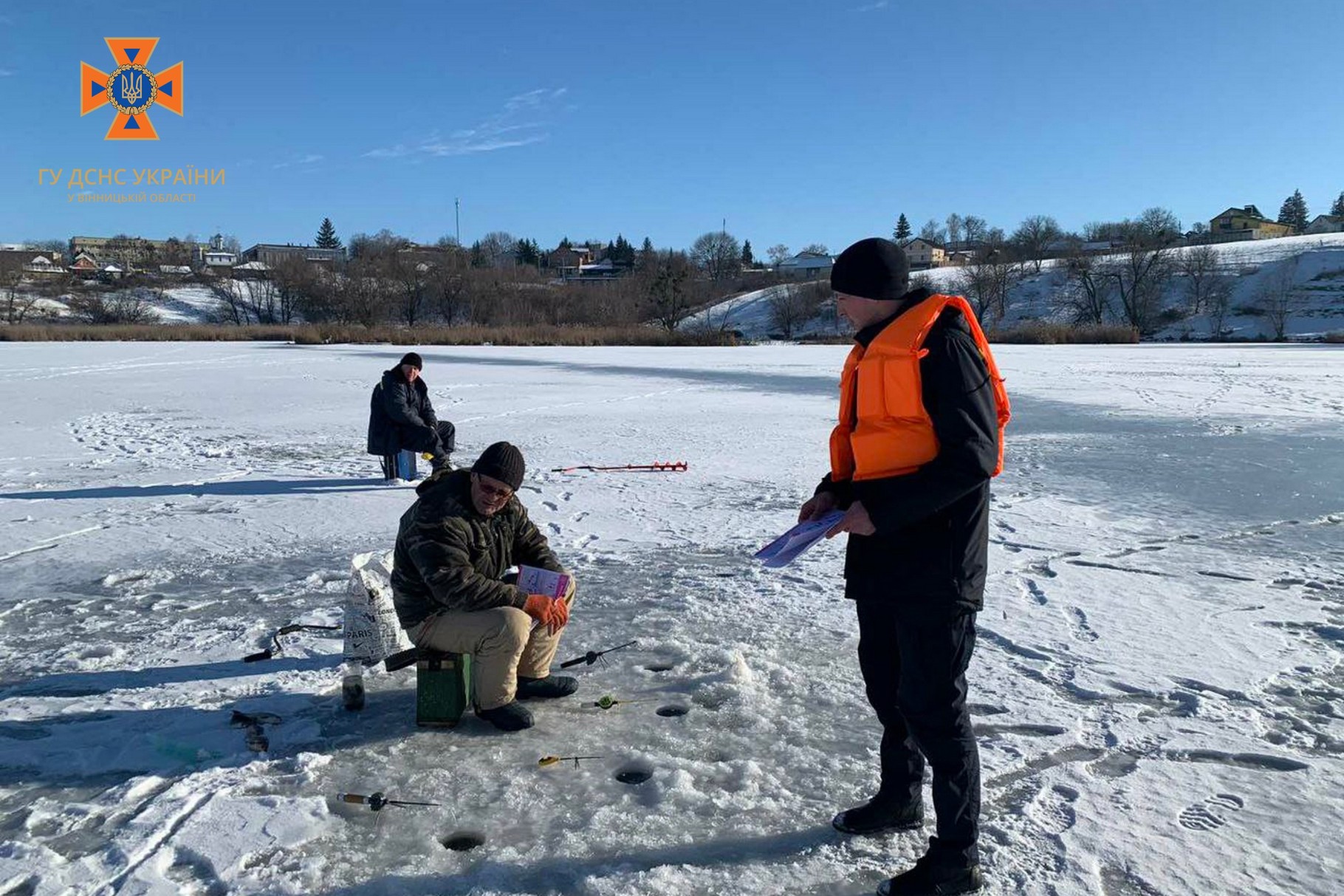 З любителями зимової риболовлі в Гайсинській, Оратівській та Гніванській територіальних громадах надзвичайники провели роз’яснювальну роботу. Під час якої, фахівці ДСНС нагадали основні правила безпечної поведінки на кризі та способи порятунку людей, які опинилися у крижаній воді.