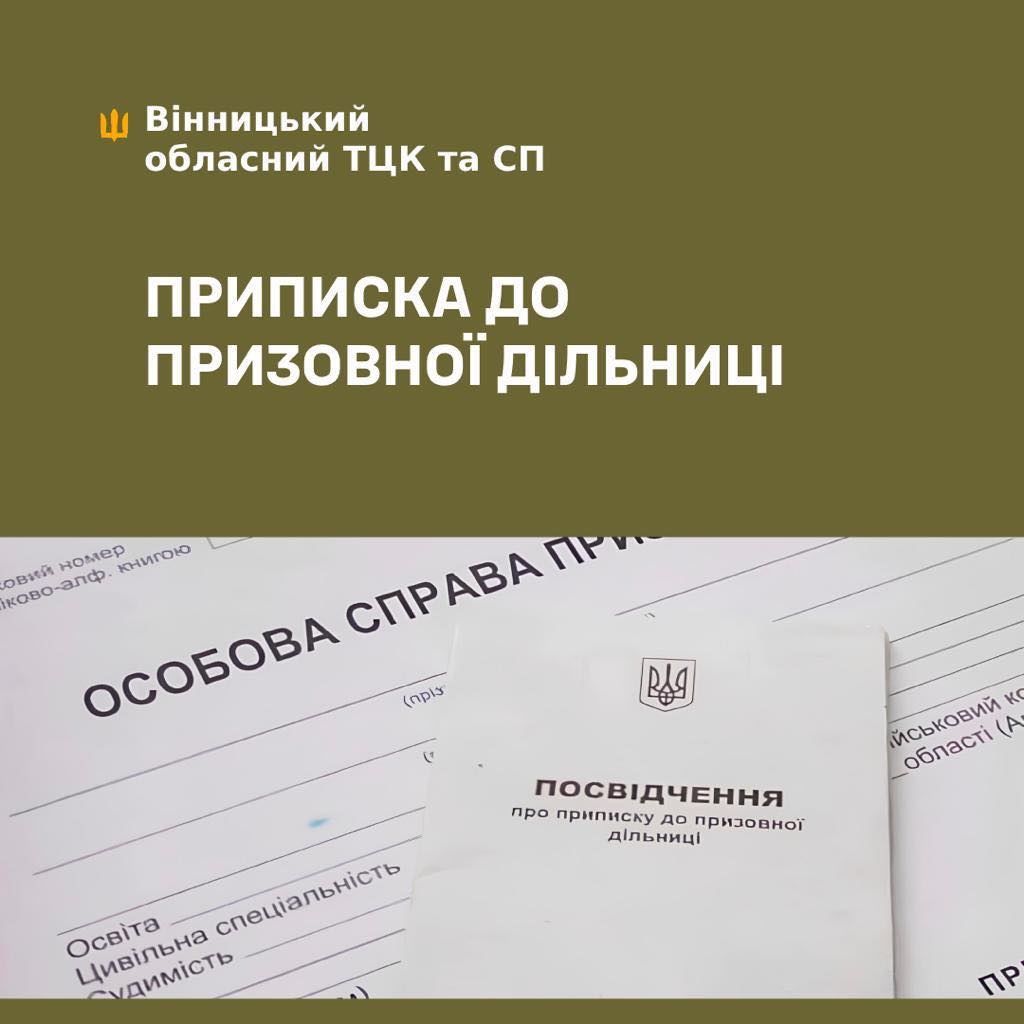 Вінницький обласний ТЦК та СП закликає 17-річних юнаків приписатися до призовної дільниці. Зробити це потрібно з 1 січня по 31 березня.