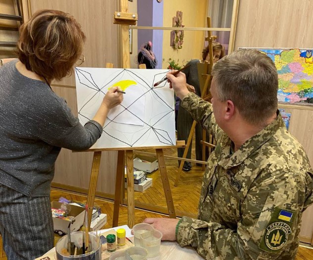 Фраза «Вірю в ЗСУ» стала основою до картини, яку малювали діти та представник районного ТЦК та СП. У дітей, які зустрічалися з військовими, рідні воюють на фронті чи перебувають в Силах оборони.
