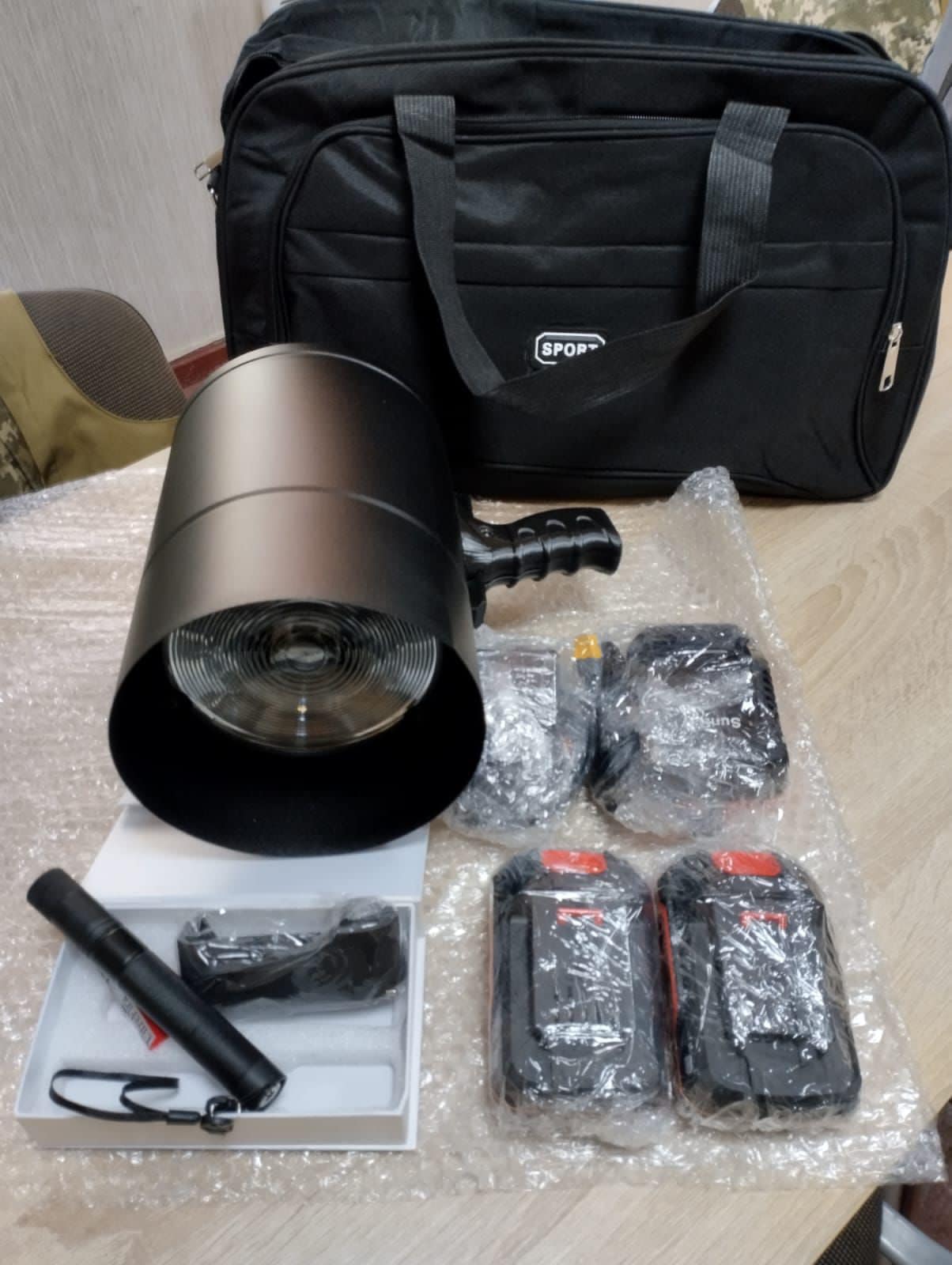 Наш Гуманітарний штаб виконав черговий запит військових та цього разу передав зенітні пошукові прожектори та лазерні цілевказівники для ефективної боротьби з ворожими ударними безпілотниками у нічний час доби.