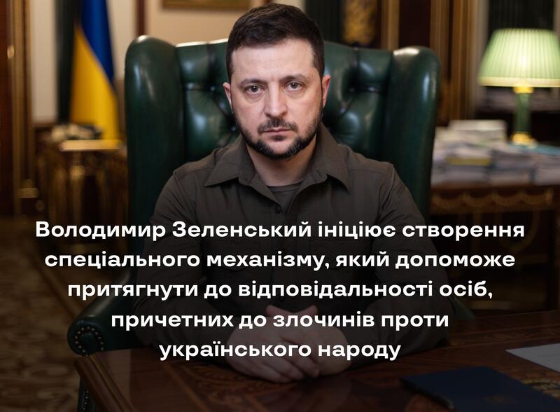 Президент України Володимир Зеленський ухвалив рішення про створення спеціального механізму правосуддя в Україні для розслідування та судового розгляду кожного злочину російських окупантів на території нашої держави.