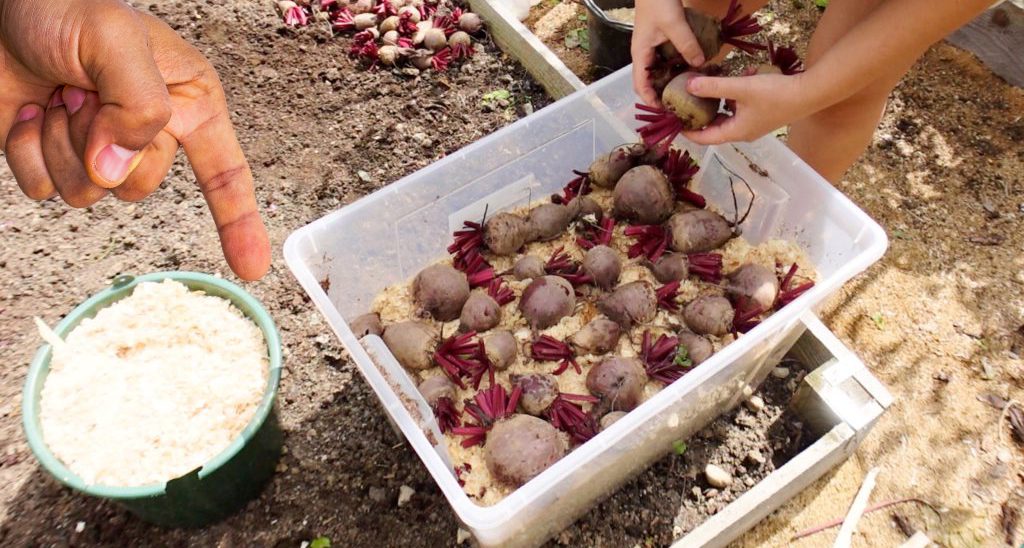 Пісок: На дно бачка насипте шар піску завтовшки близько 2 см. Пісок допомагає підтримувати оптимальну вологість та захищає коренеплід від гниття.
