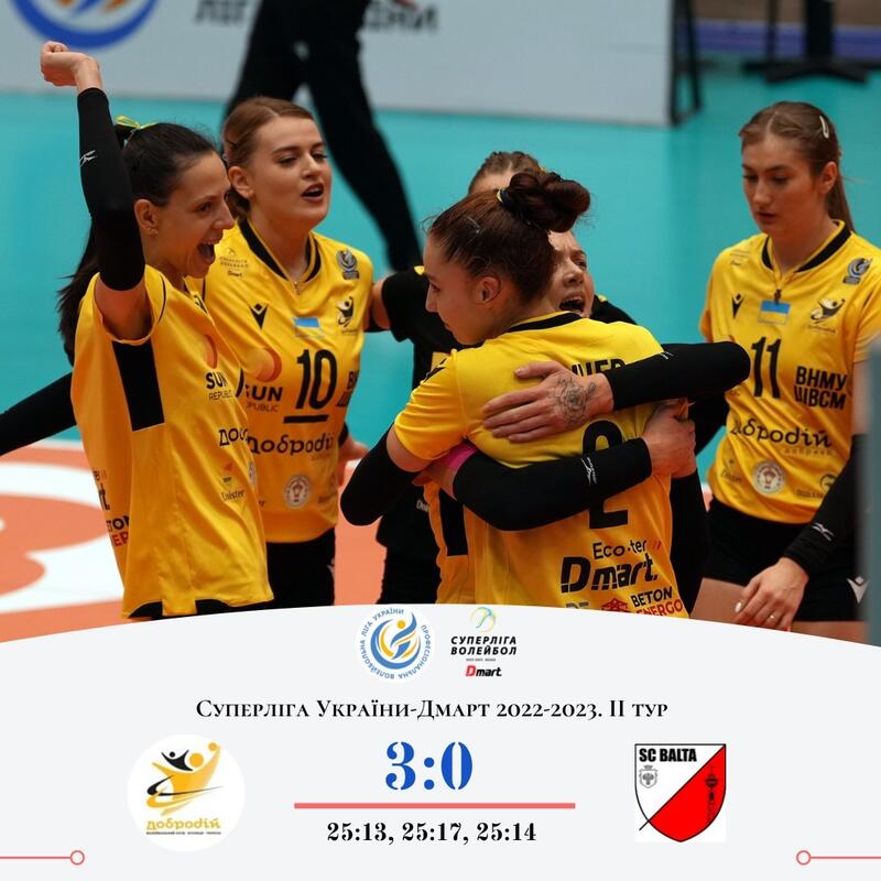 ВК «Добродій-Медуніверситет-ШВСМ» – СК «Балта» – 3:0 (25:13, 25:17, 25:14).